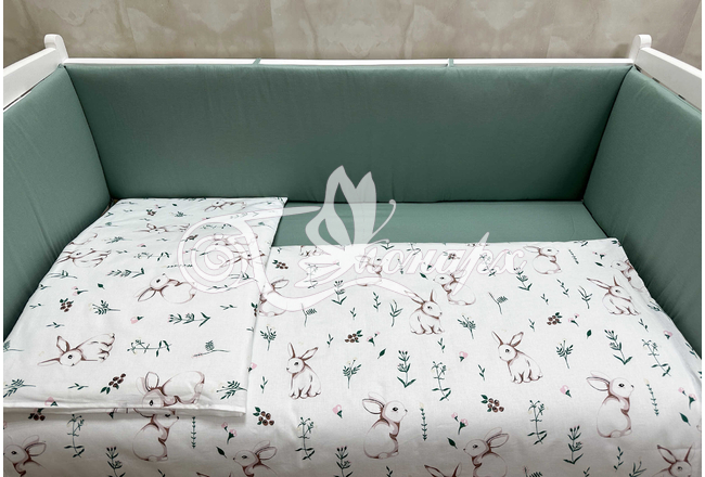 Бортики СО СЪЕМНЫМИ ЧЕХЛАМИ в кроватку: защитят Вашего малыша от ушибов, сквозняков, солнечных лучей и не дадут малышу запутаться в прутьях кроватки. - Простыня на резинке 60х120 см (подходит для стандартной кроватки)